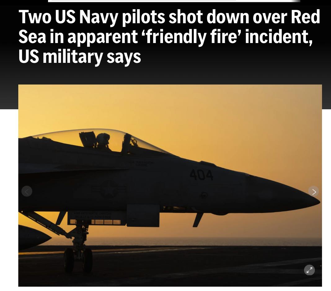 "Ракетний крейсер USS Gettysburg, який входить до складу авіаносної ударної групи USS Harry S. Truman, помилково обстріляв та збив літак F/A-18", - йдеться у заяві Центрального командування.