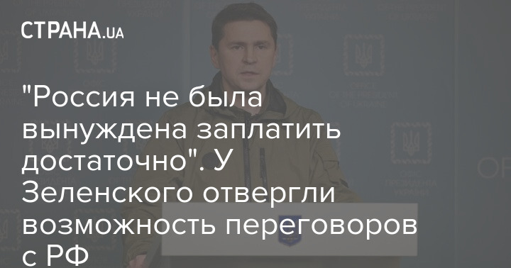"Росія не була змушена заплатити достатньо". У Зеленського відкинули можливість переговорів із РФ