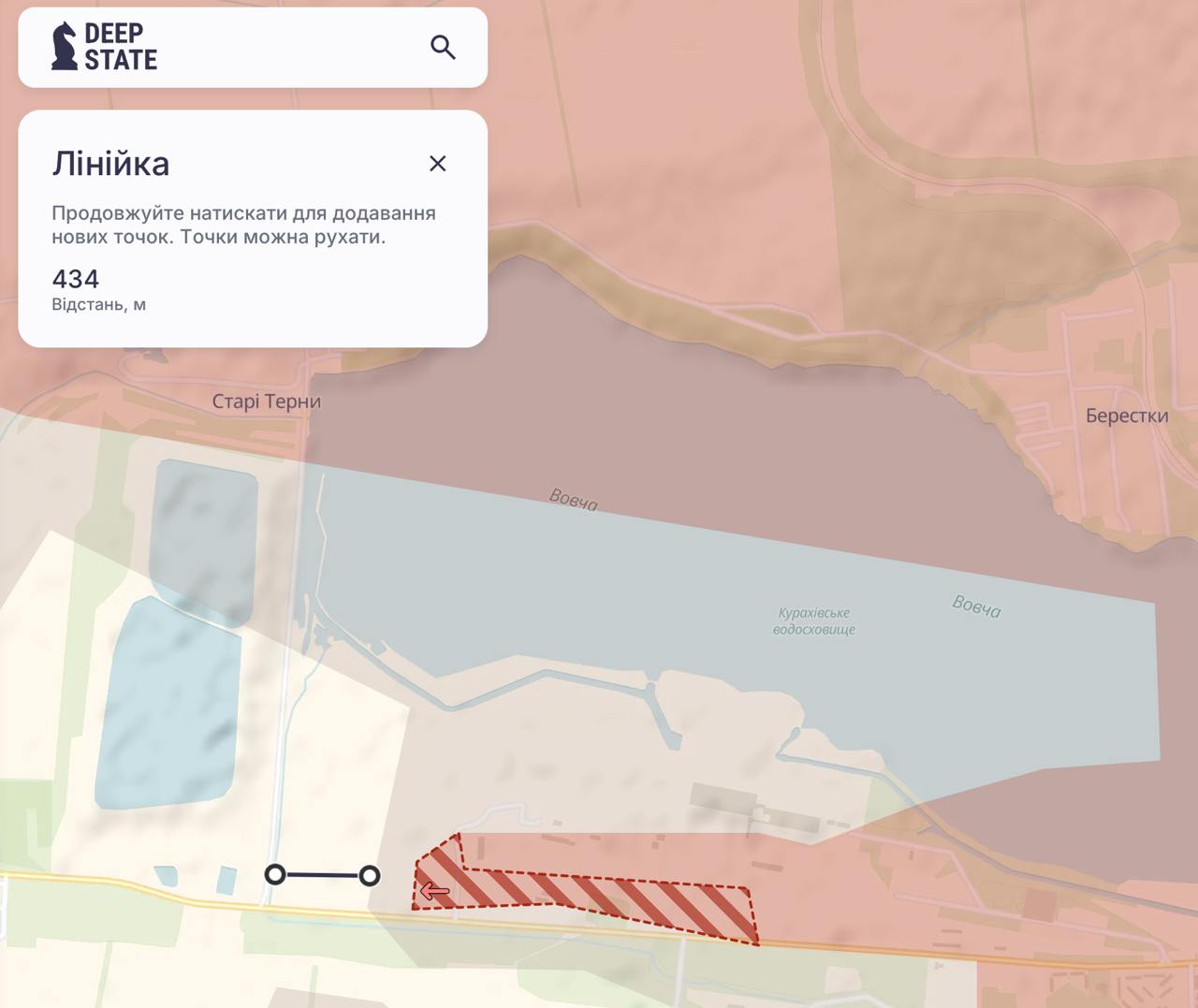 На українських картах ця позиція утримується ЗСУ, хоча до лінії фронту звідти менше ніж півкілометра.