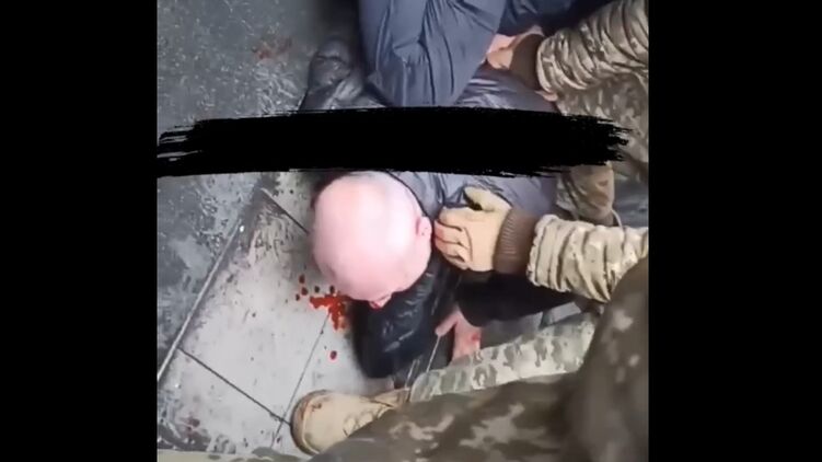 Не на кадрах видно, що у чоловіка розбите обличчя. За підсумком колотнечі він піднімається і йде до автомобіля військкомів, показуючи, що на підлозі пасажирського відділення лежить його натільна сумка.