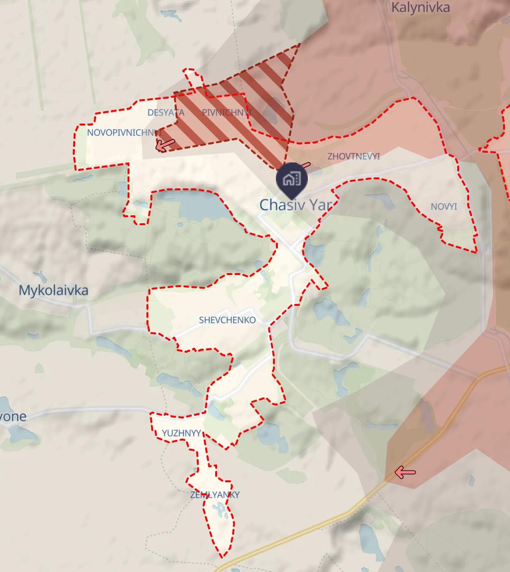 7.58 Росіяни значно просунулися у Часовому Яру та Торецьку, показує карта військового паблика Deep State.