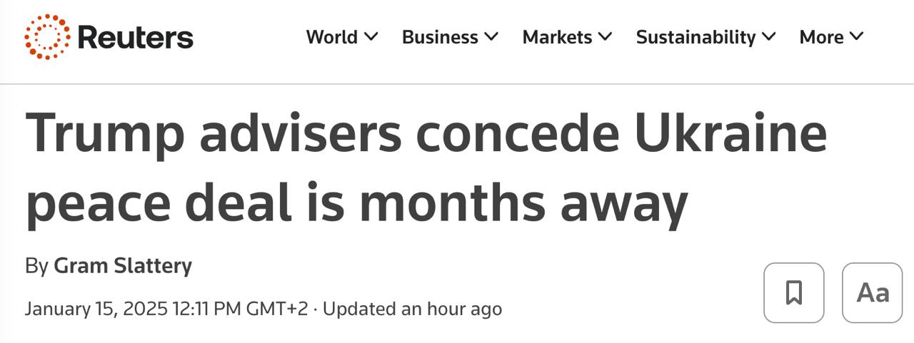 Радники новообраного президента США Дональда Трампа "визнають, що на врегулювання війни в Україні підуть місяці або навіть більше часу".