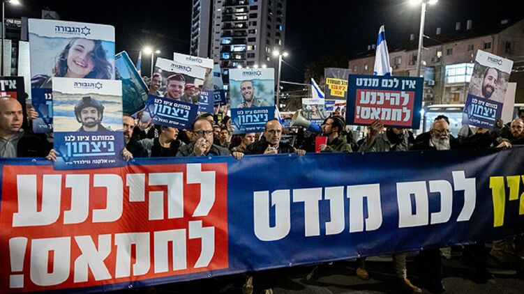 Однак, не всі раді домовленості. На в'їзді до Єрусалиму проходить акція протесту проти операції з ХАМАС, у рамках якої Ізраїль зобов'язується припинити бойові дії у секторі Гази. У протесті беруть участь родичі викрадених ХАМАС ізраїльтян, сім'ї загиблих у цій війні, які перебувають у форумах "Гарбуза" та "Гвура".