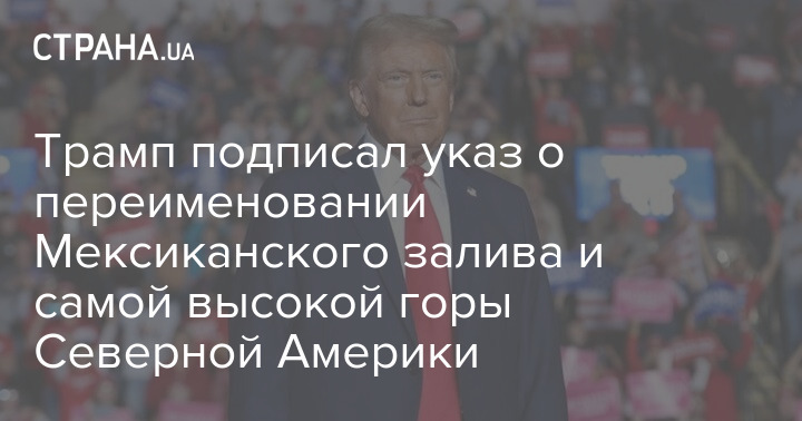 Президент США Дональд Трамп підписав указ про перейменування Мексиканської затоки на Американську, а найвищої гори Північної Америки Деналі на Алясці - на гору Мак-Кінлі.