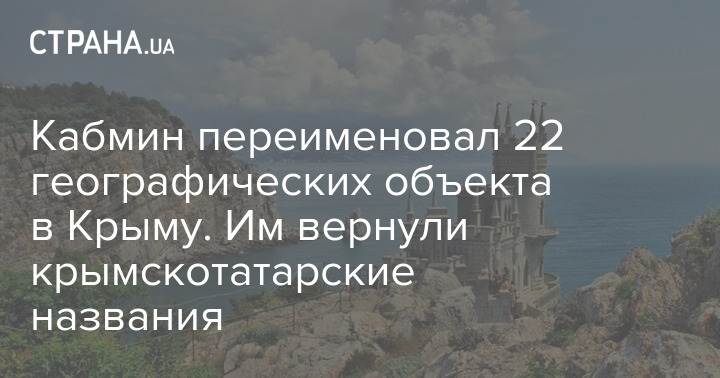 Кабмін перейменував 22 географічні об'єкти в Криму, який знаходиться під контролем РФ. Більшості з них повернуто кримськотатарські назви, що існували до 1944 року.