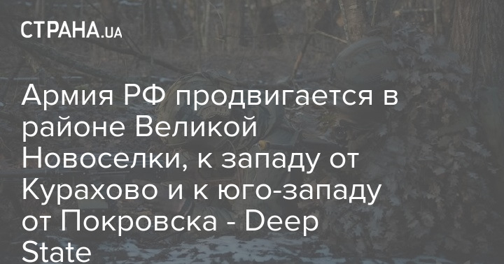 Армія РФ просувається в районі Великої Новосілки, на захід від Курахового та на південний захід від Покровська - Deep State