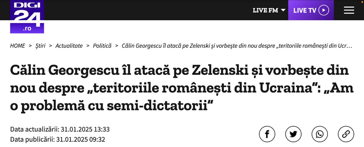 "У мене є проблема з напівдиктаторами, які ставлять свої власні інтереси та інтереси групи, яку вони представляють, вищі за національні інтереси. Ось чому, я питаю, чому пан Зеленський, як і пан Йоханніс (президент Румунії Клаус Йоханніс - Ред. ), не допускає вільних виборів". — Хіба вони не бояться?.. Скільки разів Зеленський просив про зброю? домовитись, але життя обговоренню не підлягає", - заявив Джорджеску.