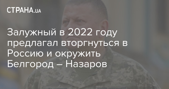 Залужний у 2022 році пропонував вторгнутися до Росії та оточити Білгород – Назаров