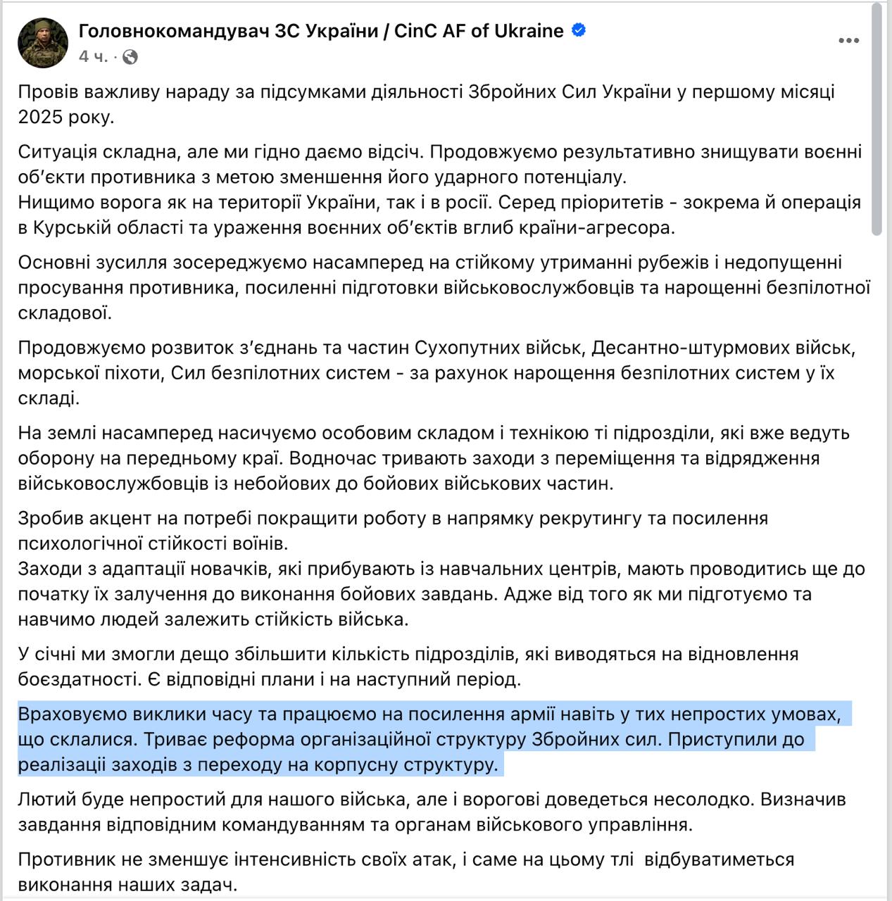 Учора головнокомандувач ЗСУ Олександр Сирський оголосив про план реформувати ЗСУ та перехід на "корпусну структуру".