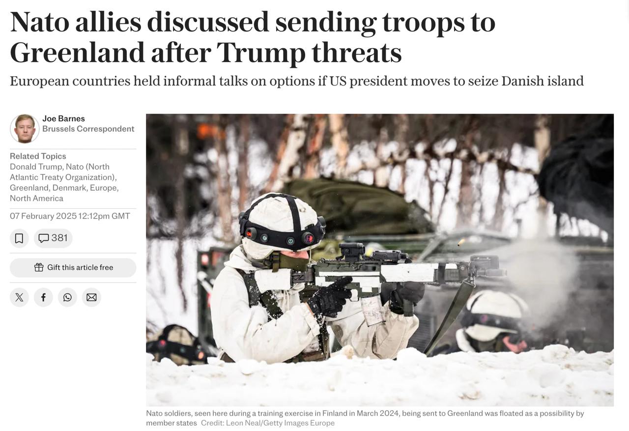 "Берлін не хоче відправляти війська в Україну, тому що ситуація "занадто неоднозначна", але відкрито натякає на можливість відправлення військ НАТО до Гренландії. Це як компас без стрілки", - сказав дипломат НАТО.