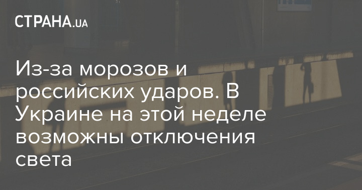 Цього тижня можливі відключення світла для населення через морози та російські удари по газових родовищах.