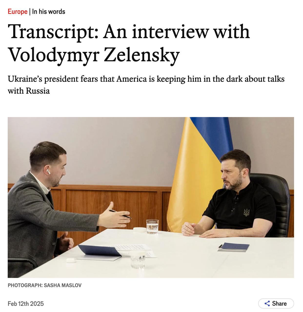 На цьому наголосив президент України Володимир Зеленський в інтерв'ю британському журналу The Economist.