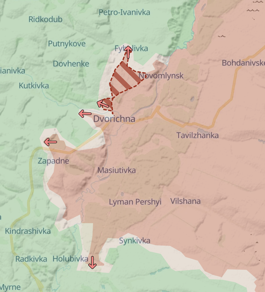 Крім того, чергове просування в РФ є на плацдармі на правому березі Оскола на північ від Дворічної.