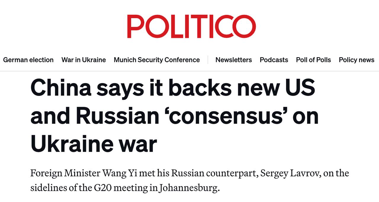 Китай підтримує "недавній консенсус", досягнутий США та Росією щодо припинення війни в Україні.