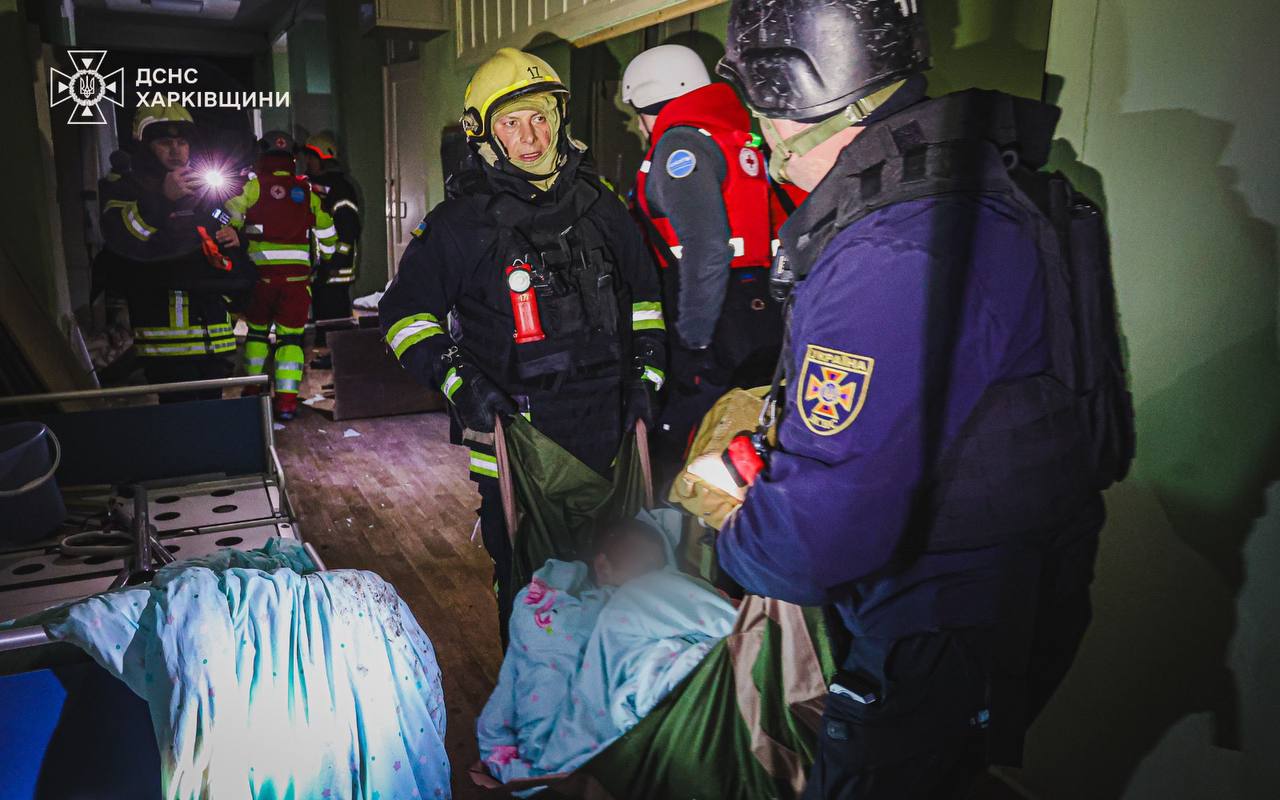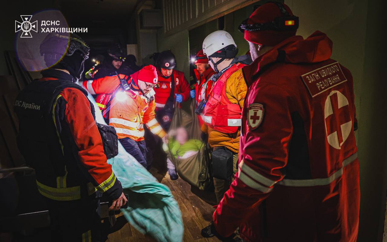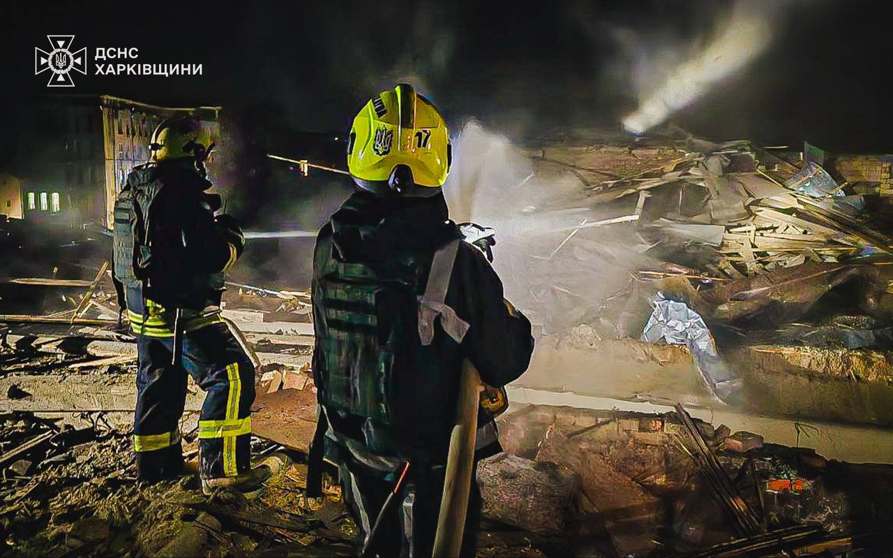 Наслідки нічного остелу Харкова. Фото: ДСНС