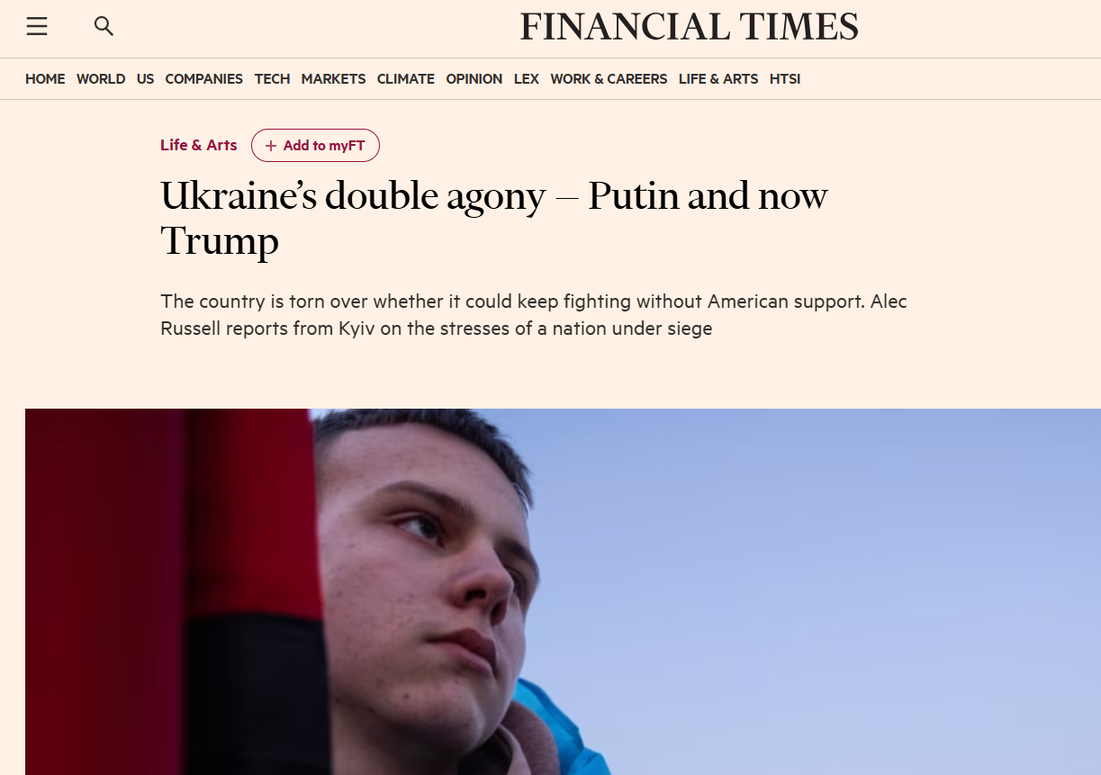 Подвійна агонія України – Путін, а тепер Трамп, з таким заголовком вийшла стаття Financial Times.