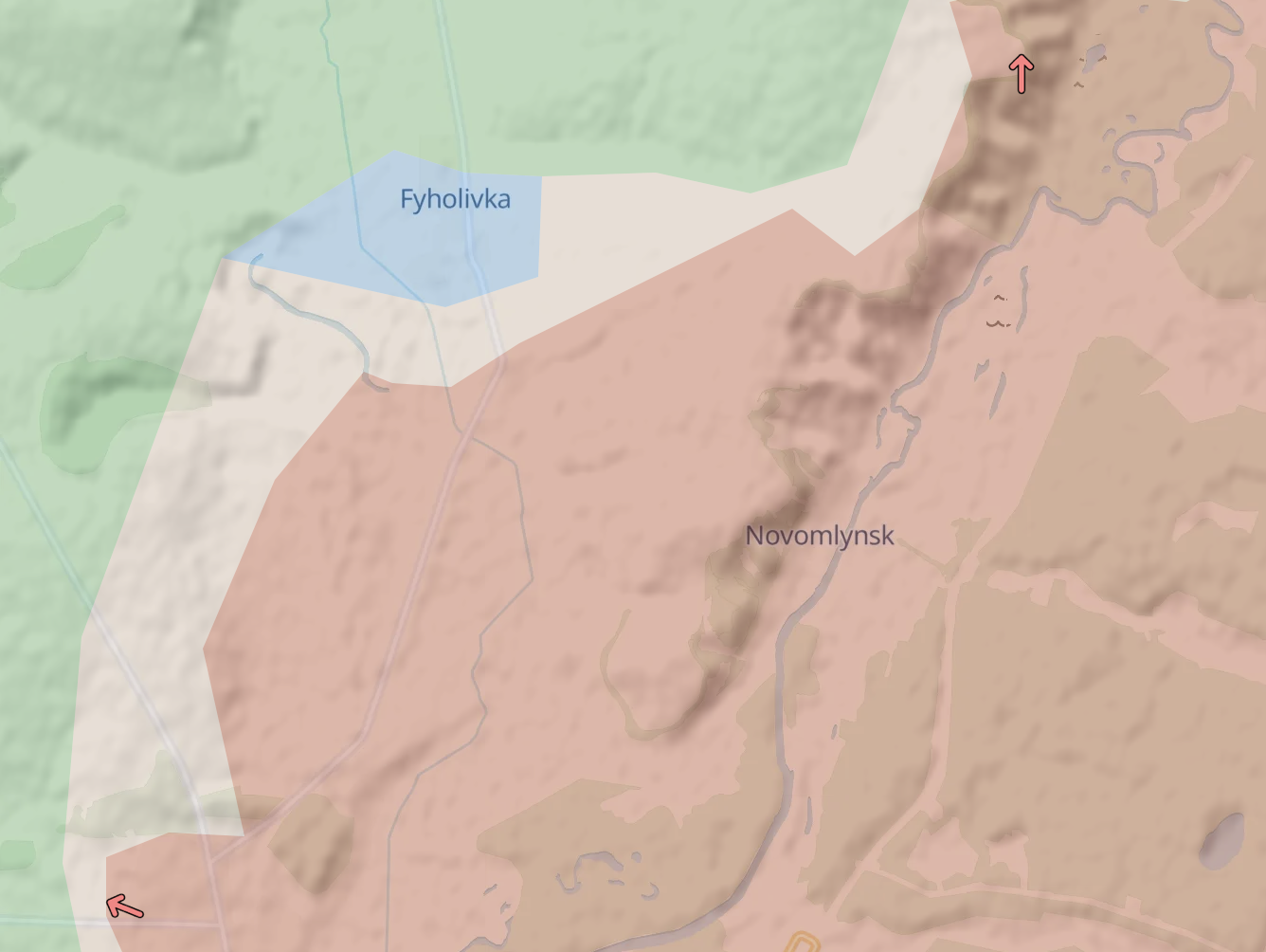 ЗСУ, за даними DeepState, відкинули росіян у Харківській області, в районі Фіголівки, де російські війська перейшли річку Оскол і закріпилися в Новомлинську.