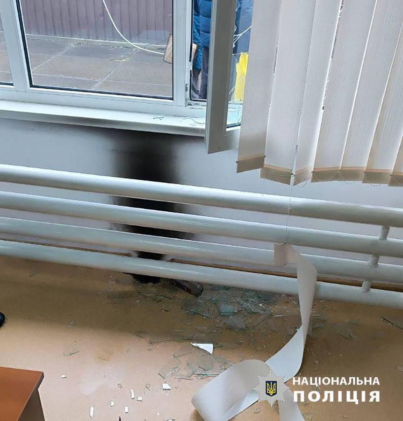 Зловмисники розбили вікно у приймальні. Фото: Нацполіція