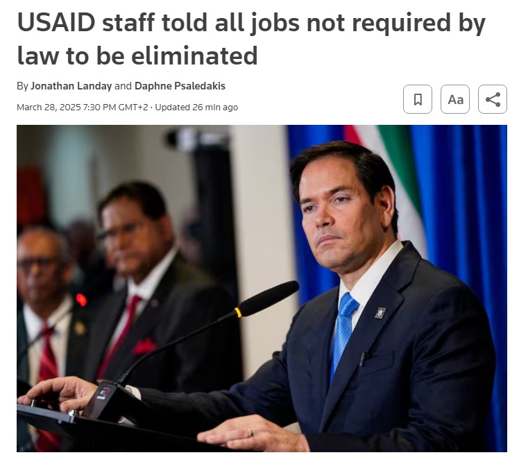 Співробітники USAID були проінформовані про це рішення запискою від члена Департаменту ефективності уряду (DOGE) Джеремі Левіна. У записці, з якою ознайомилося агентство, Левін заявляє, що всі посади USAID, які не передбачені законом, ліквідують, а персонал по всьому світу незабаром отримає електронні листи з повідомленням про це. Причому працівникам нададуть на вибір дату звільнення: 1 липня чи 2 вересня.