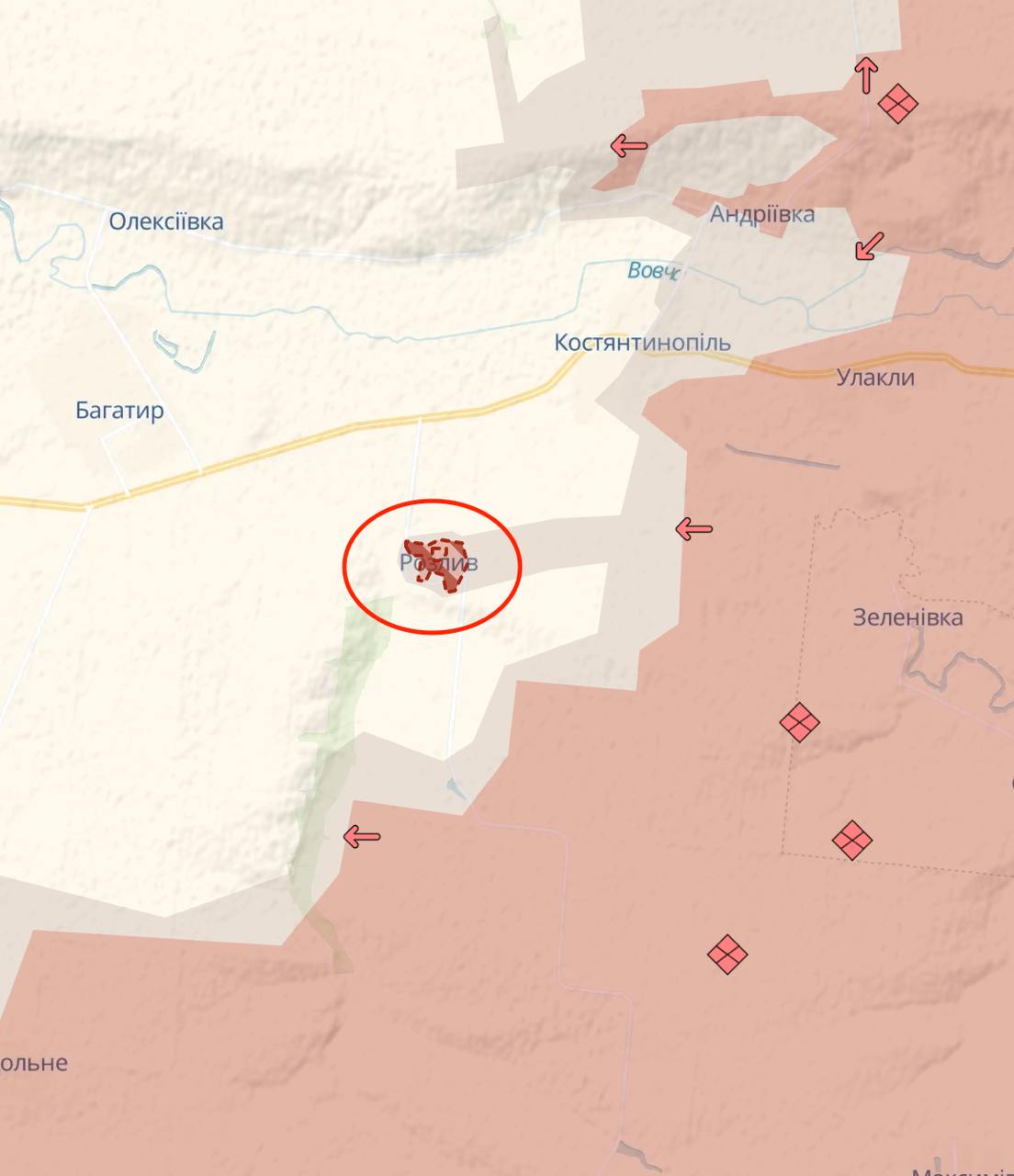 Також минулої доби росіяни значно просунулися на північ від Куп'янська в районі села Кондрашівка. З явною спробою пробитися до траси Куп'янськ – Великий Бурлук.