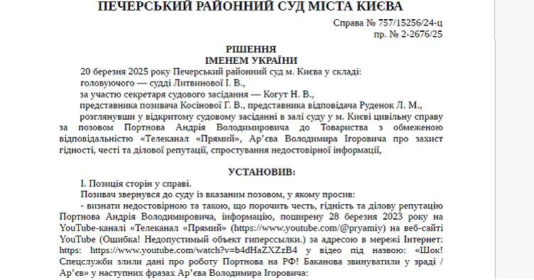 Суд зобов'язав телеканал "Прямий" та нардепа Ар'єва спростувати недостовірну інформацію про юриста Портнова