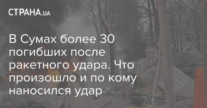 Росія вранці запустила дві балістичні ракети центром Сум. Понад 30 людей загинуло, поранено майже сто. Серед загиблих та поранених є діти.