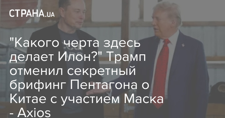 Президент США Дональд Трамп особисто наказав скасувати брифінг Пентагону, на якому мільярдеру та голові департаменту державної ефективності США (DOGE) Ілону Маску нібито мали розкрити секретні плани Вашингтона на випадок конфлікту з Китаєм.