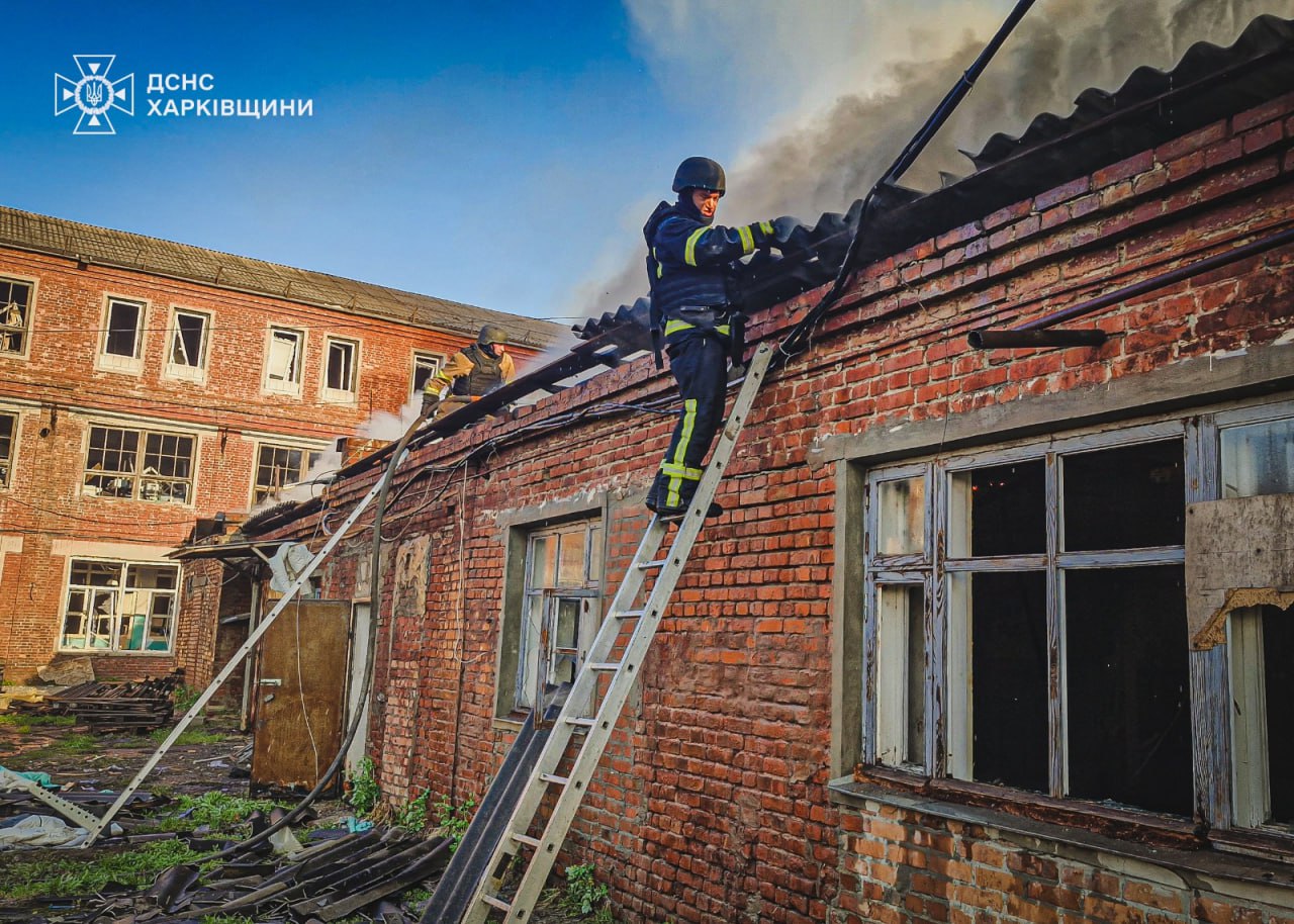 Удар був по житловому кварталу та цивільному підприємству у Харкові. Пошкоджено багатоповерхові житлові будинки, навчальний заклад, легкові автомобілі.