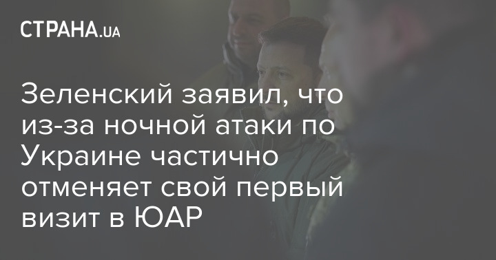 Президент Володимир Зеленський повідомив, що через нічну атаку з інфраструктури України частково скасовує свій перший візит до Південно-Африканської Республіки (ПАР).