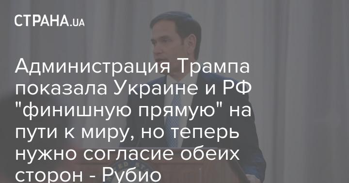 Державний секретар США Марко Рубіо заявив, що адміністрація президента США Дональда Трампа показала Україні та Росії "фінішну пряму" на шляху до миру, але тепер обидві сторони мають погодитись.