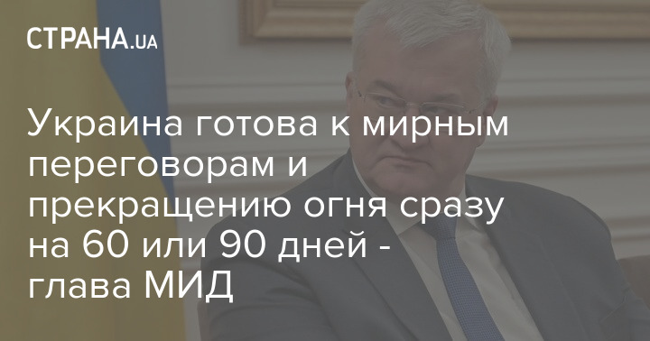 Україна готова до мирних переговорів та припинення вогню одразу на 60 чи 90 днів - глава МЗС
