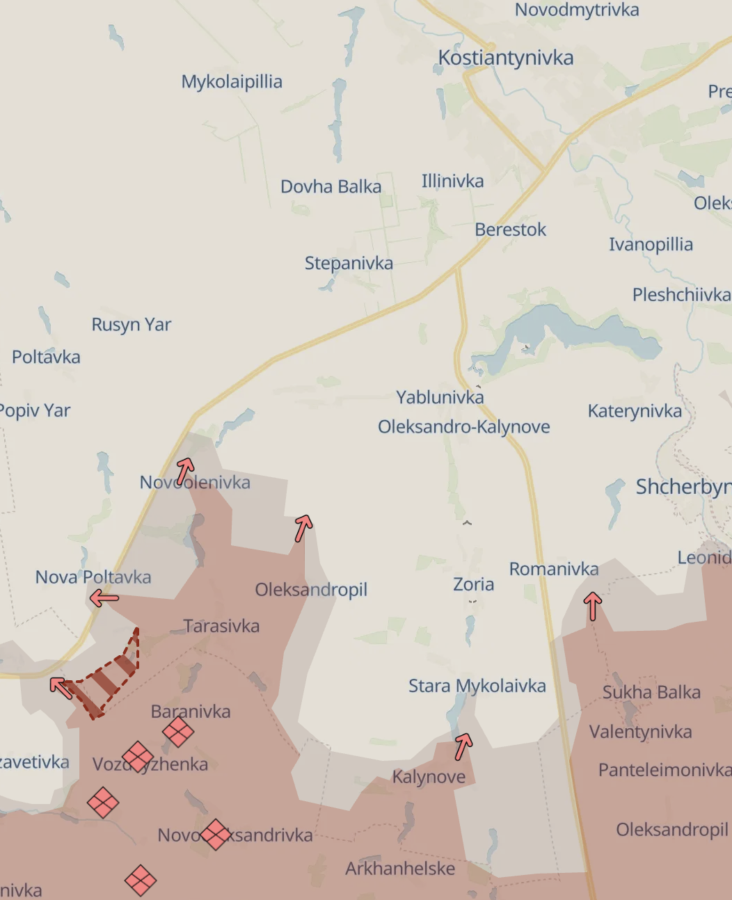 За вихідні російські війська суттєво просунулися на південь від Костянтинівки – під Романівкою, Олександрополем, Новою Полтавкою та в районі Водяного 2-го.