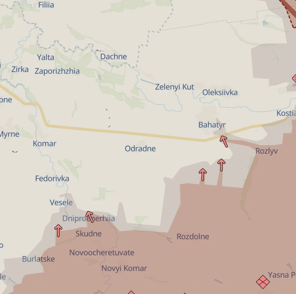 Судячи з карт, після Богатиря для російської армії відкривається шлях на 13 кілометрів уперед без населених пунктів - до сіл Ялта та Запоріжжя. Звідки трохи більше ніж кілометр до кордону Дніпропетровської області.