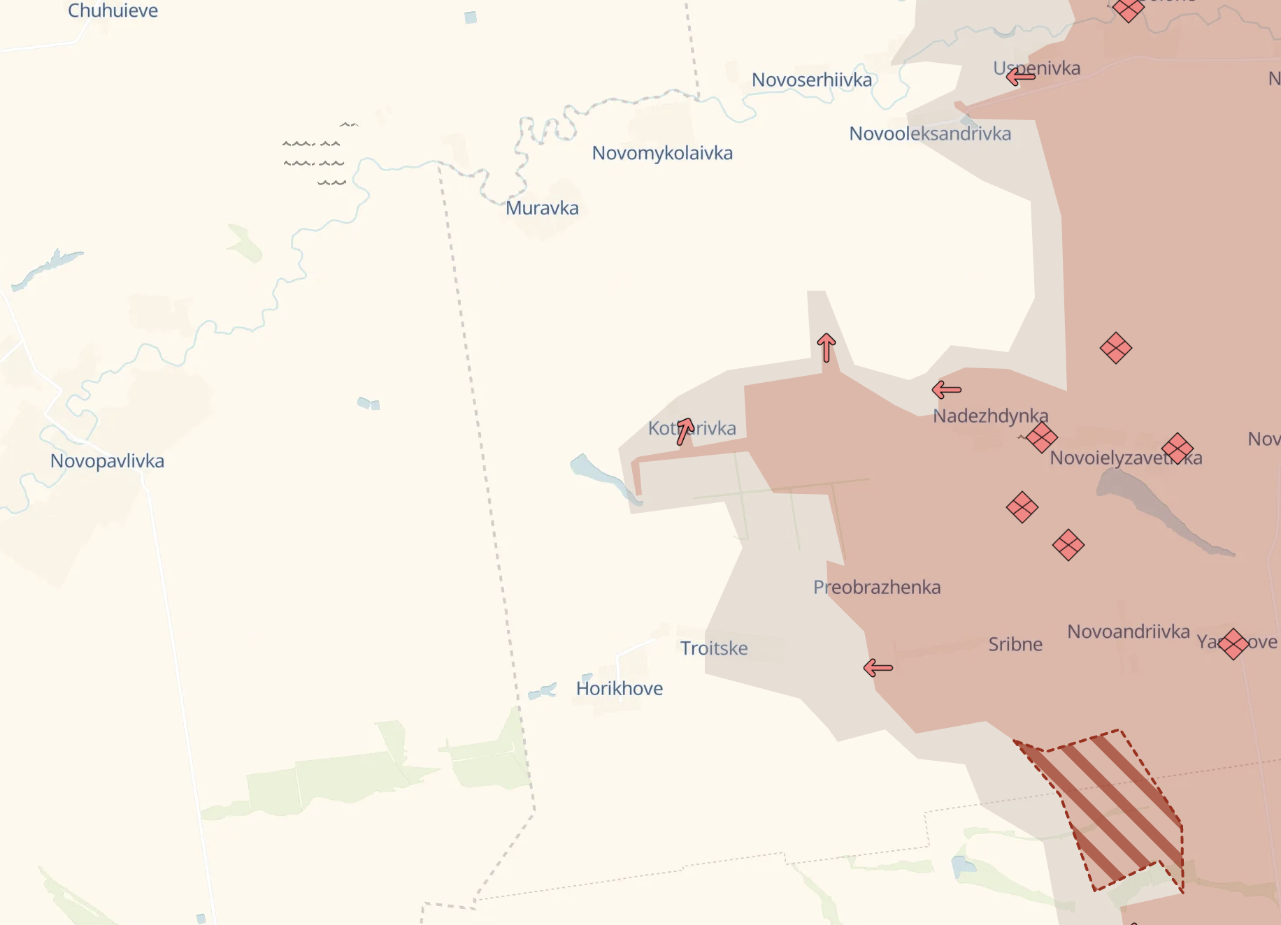 На північний захід, ближче до кордонів Дніпропетровської області, міноборони РФ заявило про захоплення села Котлярівка. Це вже підтвердив український військовий "Мучний".