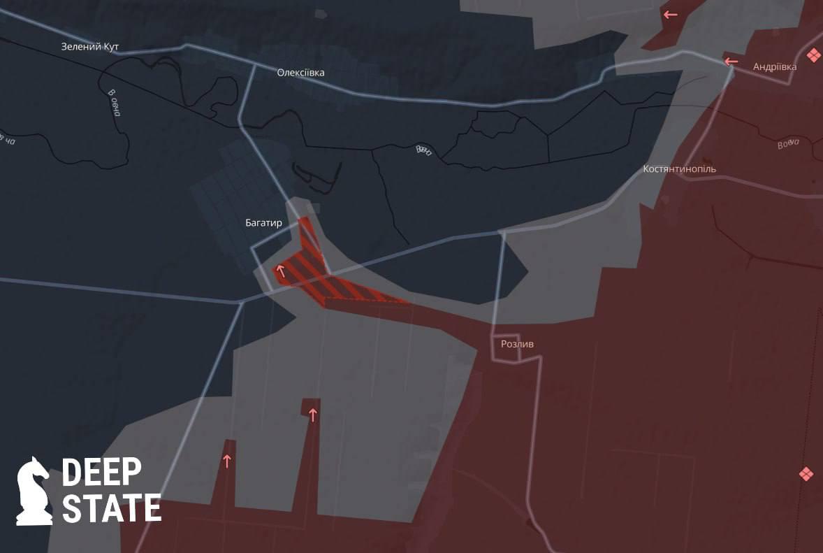 Український військовий "Мучний" пише, що росіяни вже захопили східну частину села, тиснуть у західній та ведуть бої у північній. Він вважає, що українські підрозділи потрібно вже виводити з Богатиря через сильний тиск РФ.
