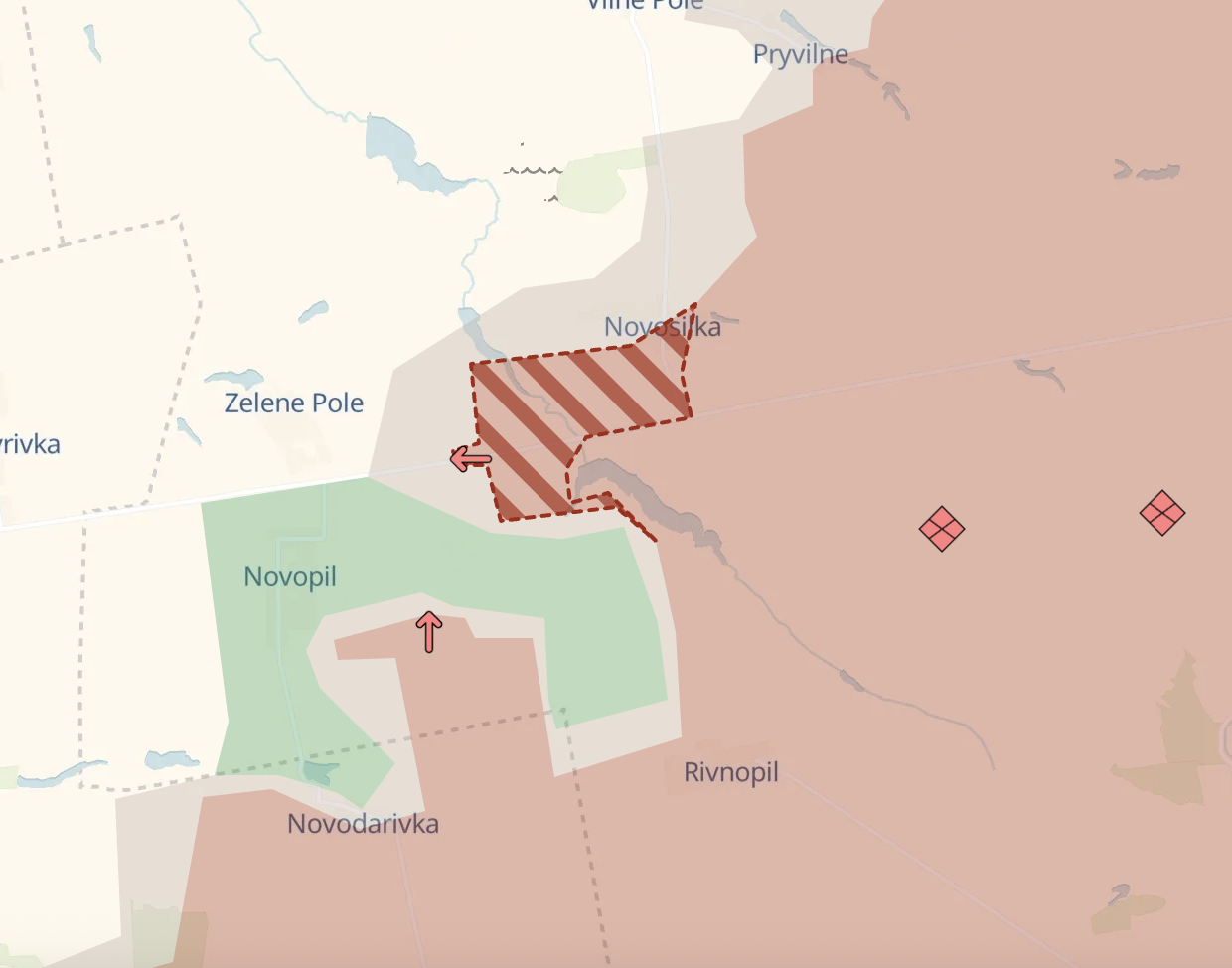 Також минулої доби росіяни просунулися на захід від Великої Новосілки, в районі Зеленого Поля.