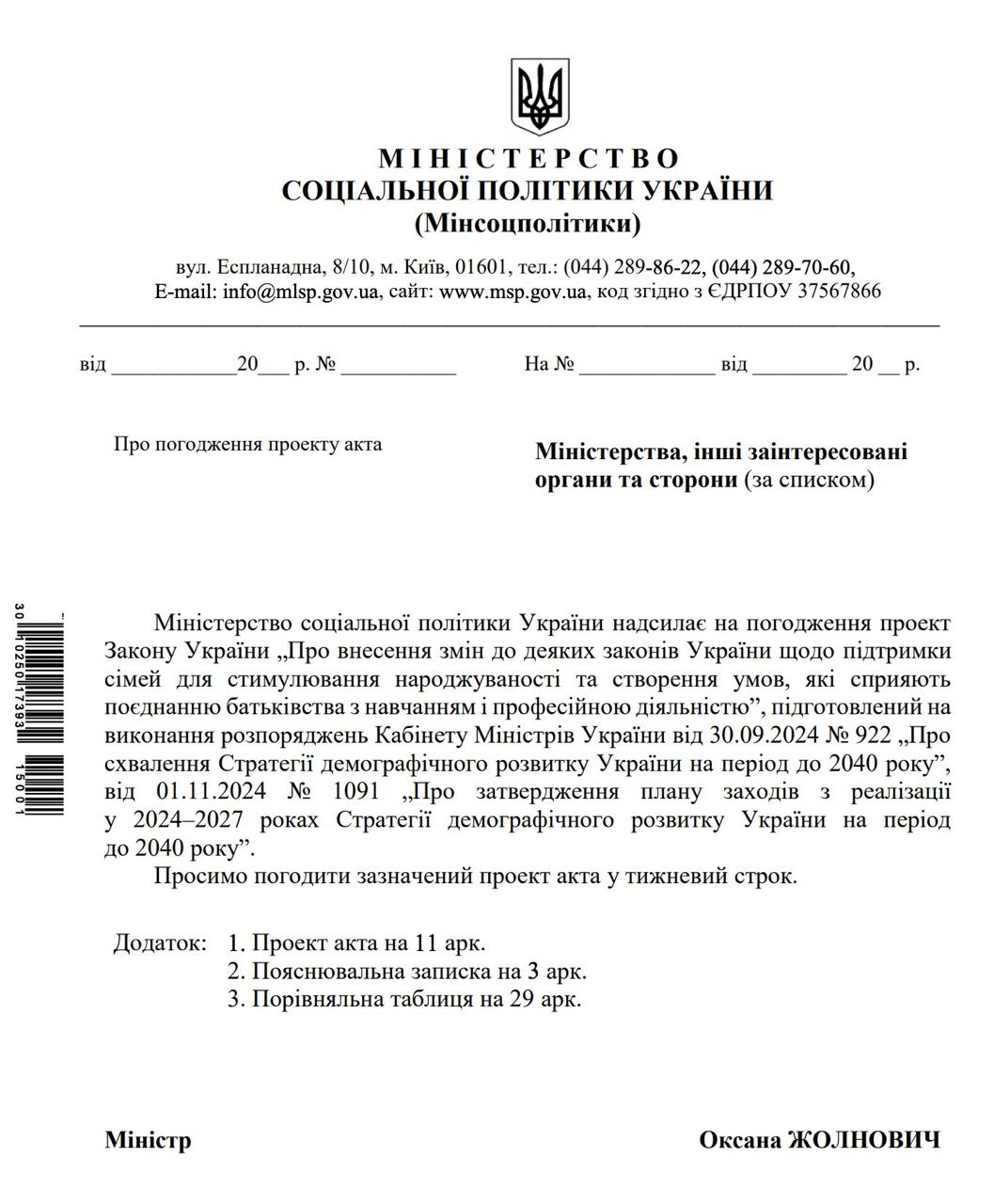 - надавати жінкам допомогу для відновлення після пологів у розмірі, визначеному Кабінетом Міністрів після ухвалення проекту акта;