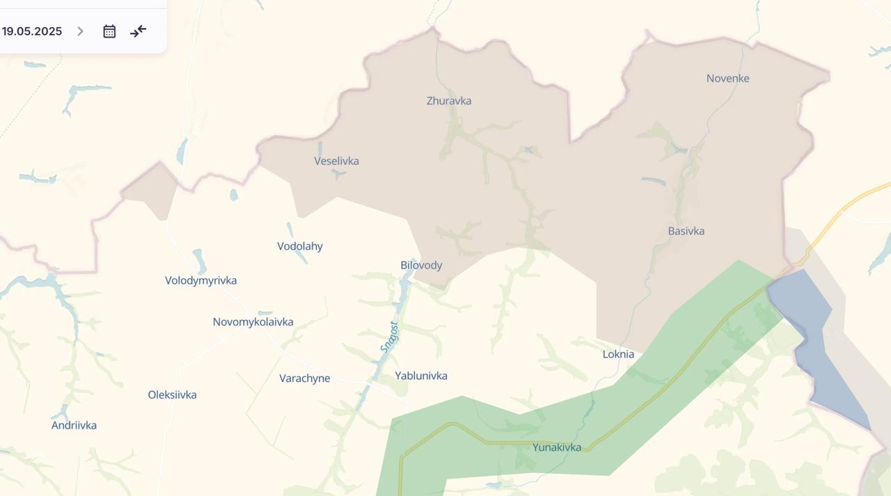 Це стверджується з посиланням на кадри, опубліковані в мілітарі-пабликах 19 травня. Російські телеграм-канали при цьому пишуть про захоплення всієї або більшої частини Локні (що Україна не підтверджувала) з метою виходу на Юнаківку та остаточного перерізання траси на Суджу. Українські військові паблики заявляють, що до цього шляху росіянам залишилося півтора кілометри від Локні.