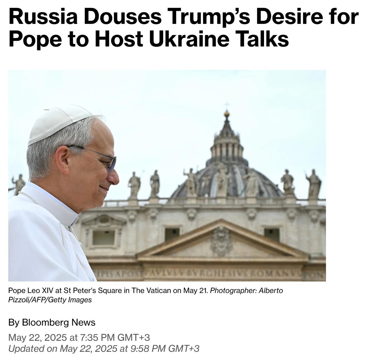 Раніше The Wall Street Journal повідомляв, що новий раунд переговорів України та Росії пройде в середині червня на території Ватикану.