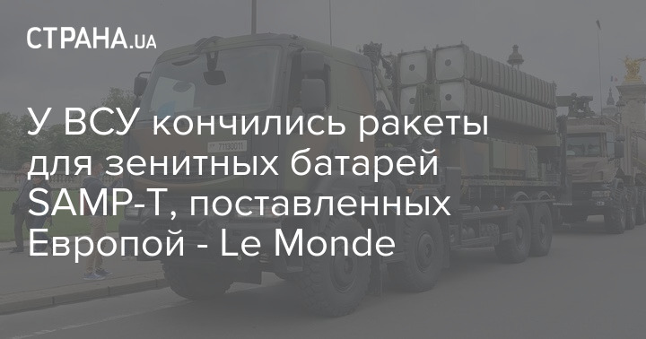 За словами іншого джерела Le Monde, "Україна більше не має ракет для двох її батарей SAMP-T, і вона не отримала жодної ракети за півтора року для зенітної системи ближньої дії Crotale".