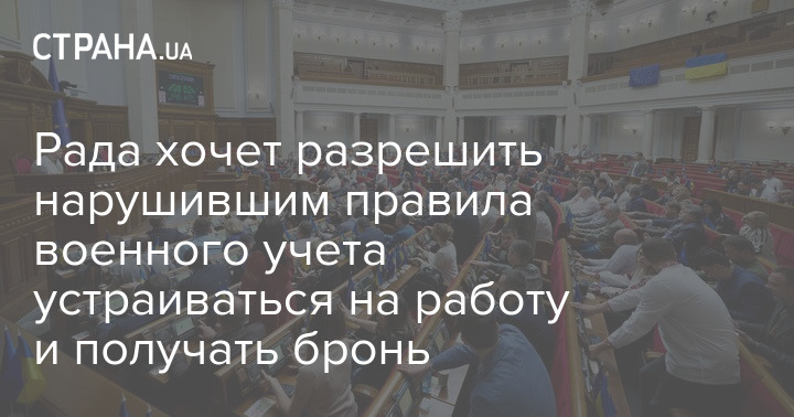 У Верховній Раді депутати пропонують дозволити українцям, які порушують правила військового обліку, влаштовуватися на роботу і отримувати броню.