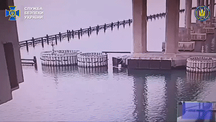 Військові телеграм-канали РФ пишуть, що опори під водою були обнесені захисними спорудами, а біля мосту зводили ряд бонових загороджень. Також вони стверджують, що опора моста від удару дрона не постраждала – він припав на захисні загородження.