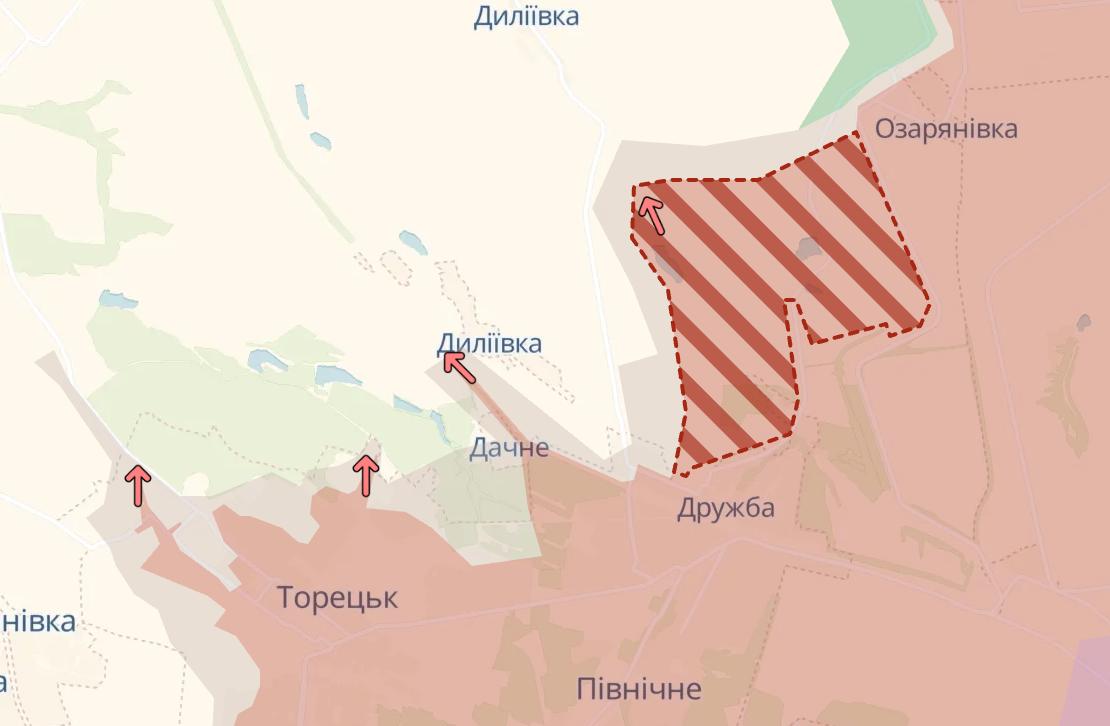 Також у них суттєвий поступ у районі Диліївки на північ від Торецька.