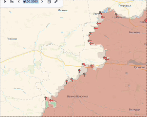Основні бої йдуть у районі Вдале – Котлине – Шевченка – Лисівка. Росіяни просуваються у бік Бельгійки під Покровськом і частково вже присутні там. Якщо їм вдасться закріпитись у цьому районі, до околиць Покровська залишиться менше двох кілометрів.