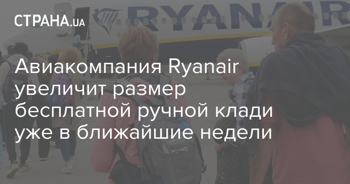 Ірландська бюджетна авіакомпанія Ryanair вже найближчими тижнями збільшить допустимий розмір безкоштовної ручної поклажі – до габаритів 40×30×20 сантиметрів.