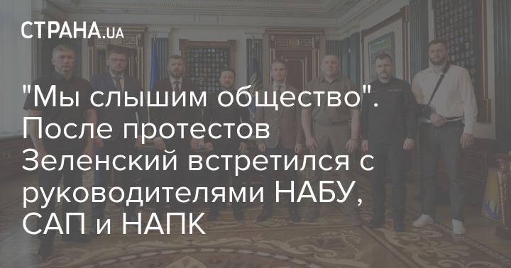 "Ми чуємо суспільство". Після протестів Зеленський зустрівся з керівниками НАБУ, САП та НАЗК