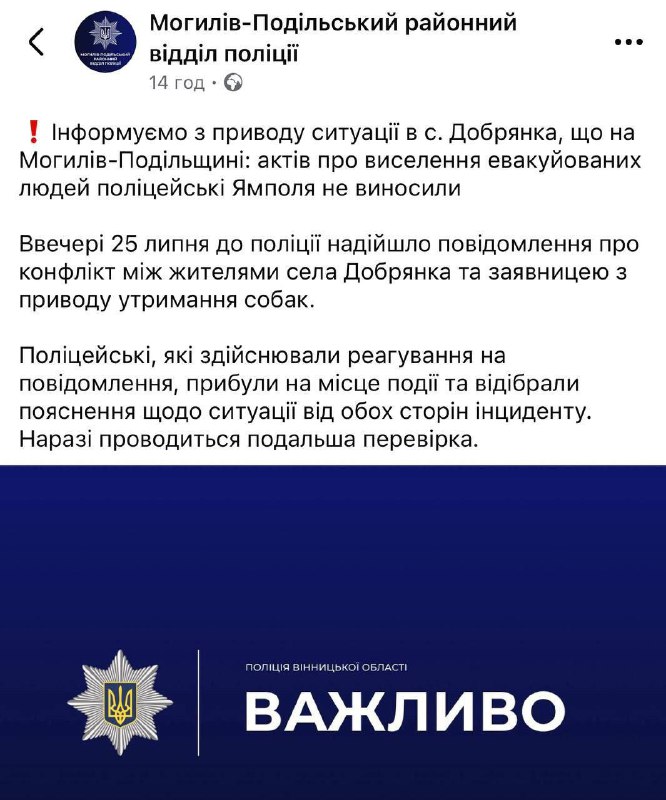 Інформація про конфлікт надійшла до районного відділу поліції Могилів-Подільського району. Зараз правоохоронці проводять перевірку у зв'язку з інцидентом.