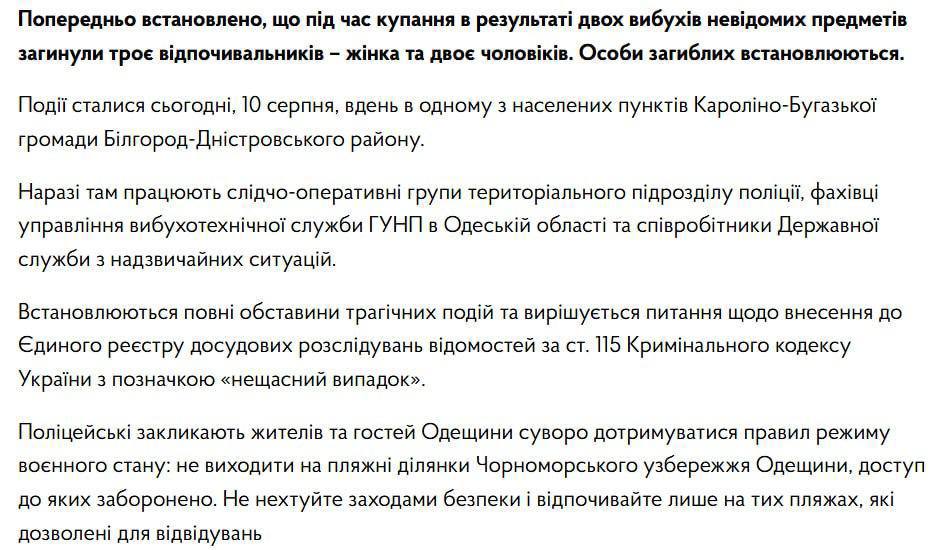 Виходячи з її заяви пляж, де стався вибух, не був дозволений для купання.