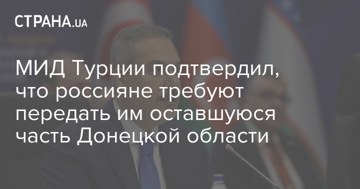 Міністр закордонних справ Туреччини Хакан Фідан підтвердив, що росіяни вимагають передати їм частину Донецької області для укладання миру, але зняли аналогічні вимоги щодо Запоріжжя та Херсона.