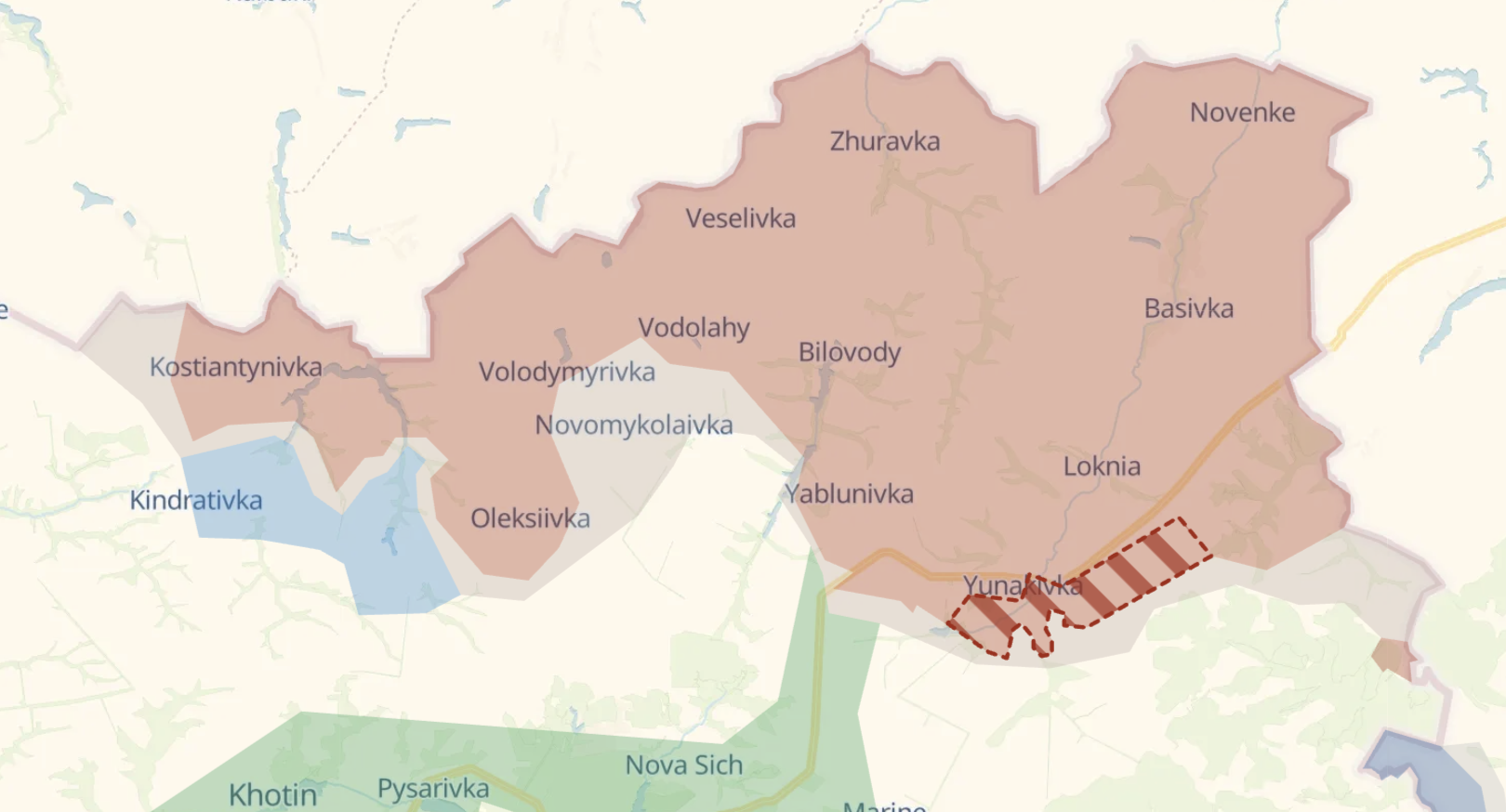 Російські війська вперше за довгий час просунулися на Сумщині, в районі Юнаківки, повідомляє військовий паблики Deep State. Українське командування раніше заявляло, що там перехопили ініціативу ЗСУ.